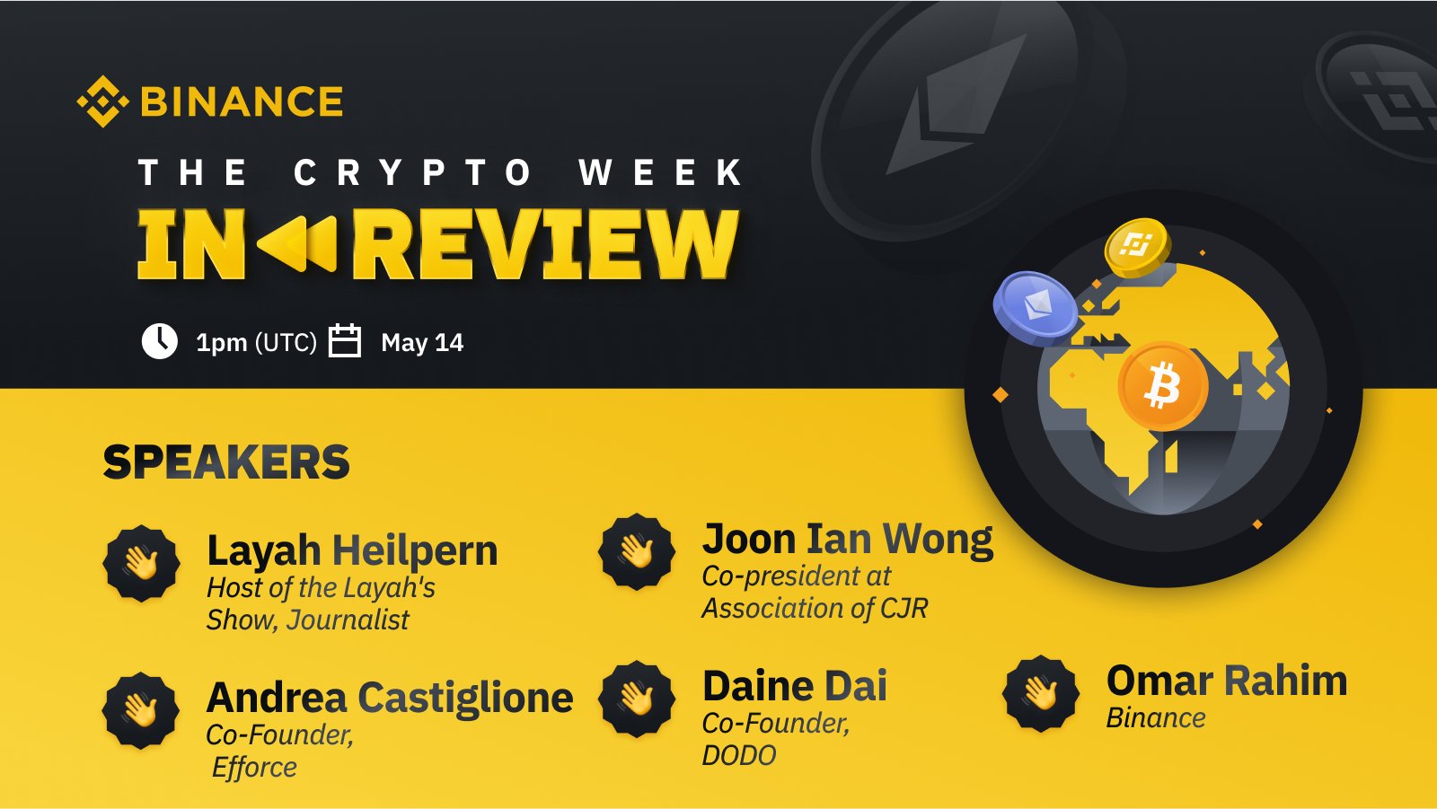 Binance On Twitter Join The Next Edition Of Crypto Week In Review On Youtube At 1 Pm Utc May 14 To Discuss The Past Week In Crypto Featuring Diane 0320 Mindbayes Layahheilpern Joonian